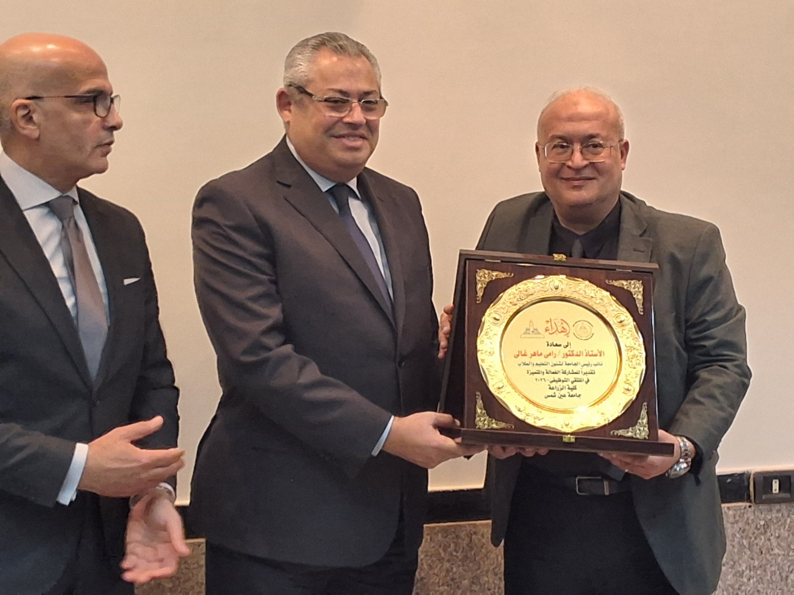 من جانبه، أشاد  د. سعد موسى - وكيل مركز البحوث الزراعية والمشرف على الادارة المركزية للعلاقات الزراعية الخارجية؛ بالدور الرائد لكلية الزراعة في دعم خطط التنمية الزراعية والصناعية، مؤكدًا أهمية ربط مخرجات التعليم باحتياجات السوق، خاصة في ظل الاهتمام المتزايد بتطبيقات الذكاء الاصطناعي لتحسين الإنتاجية وترشيد الموارد، مشيرًا إلى حرص المحافظة على تعزيز التعاون مع الجامعة لدعم المشروعات التنموية وتمكين الخريجين.